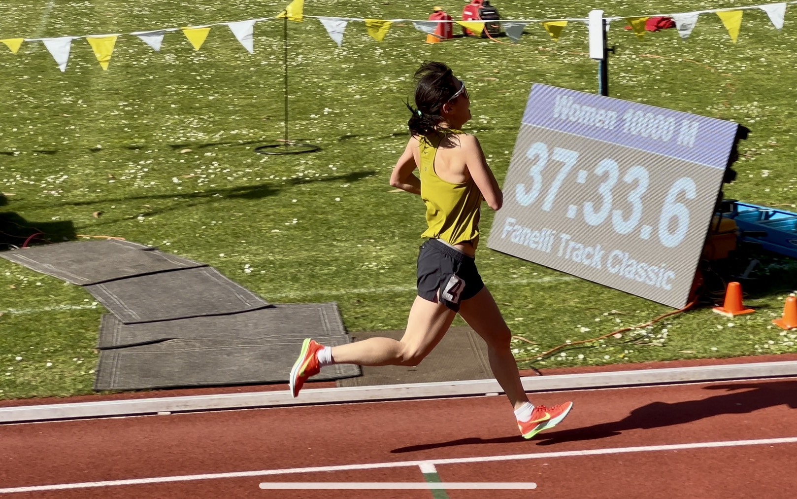 除了公路賽,美國對於場地賽與越野跑的推廣也相當普及。2014至2016年間,美彤曾三度參加 Mike Fanelli 經典賽,並兩度刷新個人最佳成績。2025年4月,為了檢視春季訓練成果,夫妻倆再度回到熟悉的舊金山州立大學,在這片熟悉的場地上,將10公里個人紀錄推進至37:33。對她而言,舊金山無疑是一片福地。