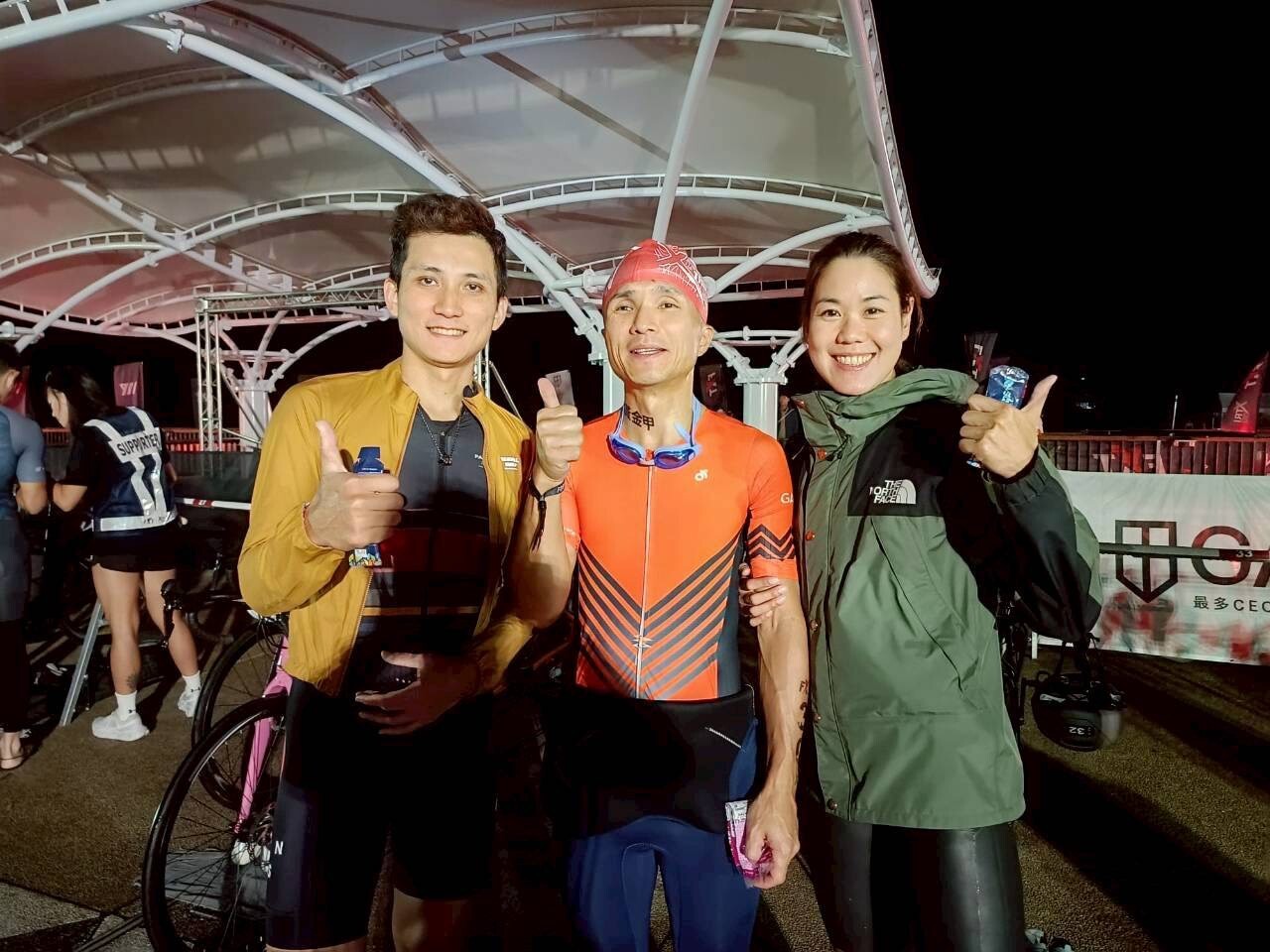 大家都知道三鐵比賽,自行車段是決勝點,當時團隊正苦於尋找能撐過長距離、高難度賽道的有經驗車手,許多人因壓力太大而婉拒,直到興哥在鐵人班同學的引薦下,聯繫上自行車凸台常勝軍但素未謀面的好手古明玄(小古)。儘管雙方不認識,小古僅憑一句:「覺得很有意義。」便爽快答應,與另一位曾陪興哥騎過雙塔的小銘(杜家銘)為這次的自行車領騎員。