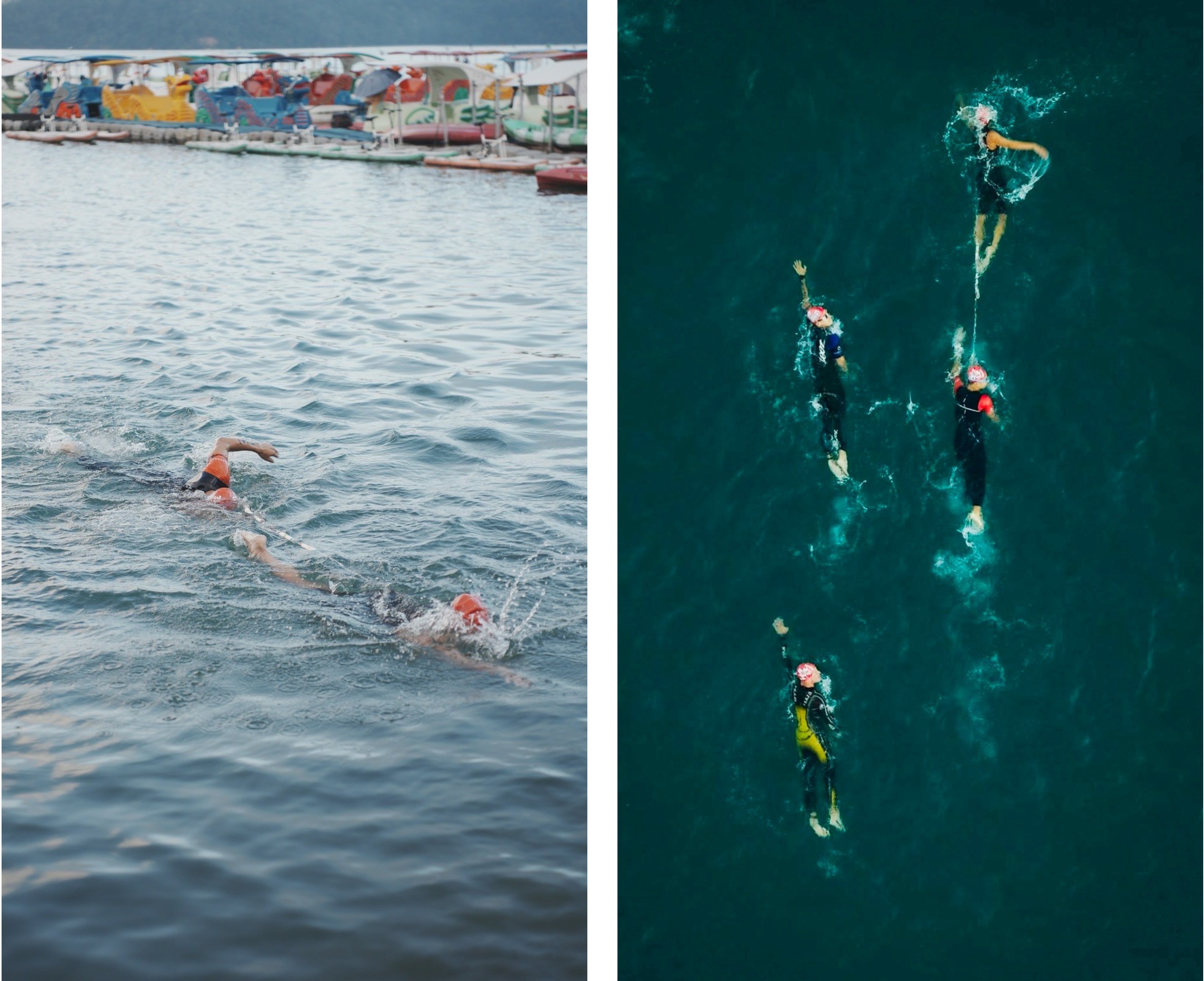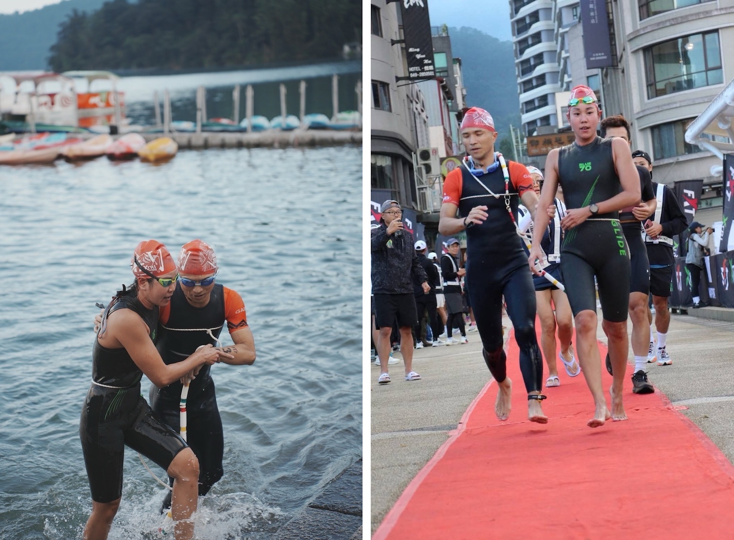更大的問題是,「我看不到浮球,只能憑直覺在茫茫大海中前進,甚至緊張到連手錶都忘記按!」在體力耗盡、焦慮的當下,她堅持不能讓連接兩人的繩子鬆掉,「只要繩子一鬆,興哥就會覺得有狀況,我必須讓他感到安心。」直到游到體力耗盡、完全偏離航道時,被工作人員及時導引,才讓迷失的兩人找回正確的方向。最終,他們用75分鐘完成游泳段,還游出興哥的3.8公里個人最佳成績。