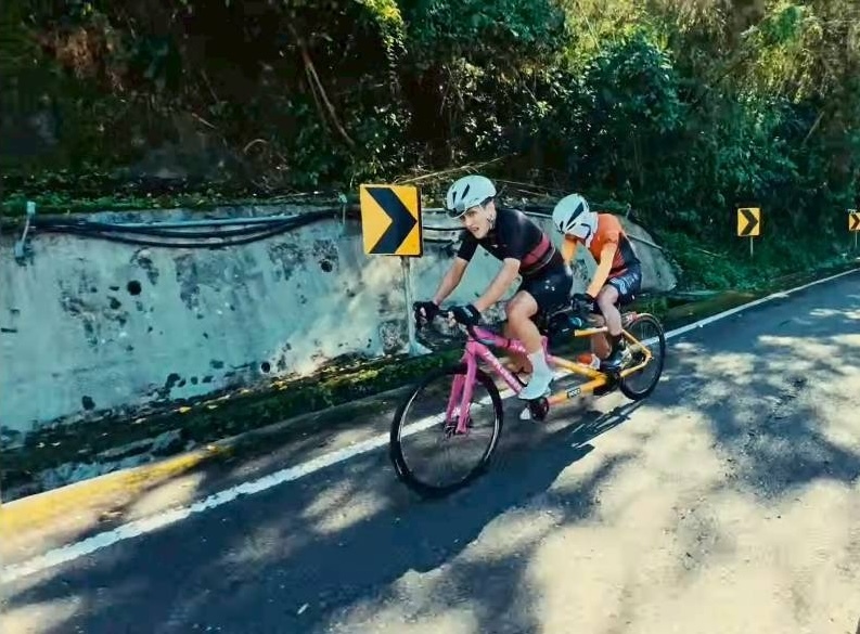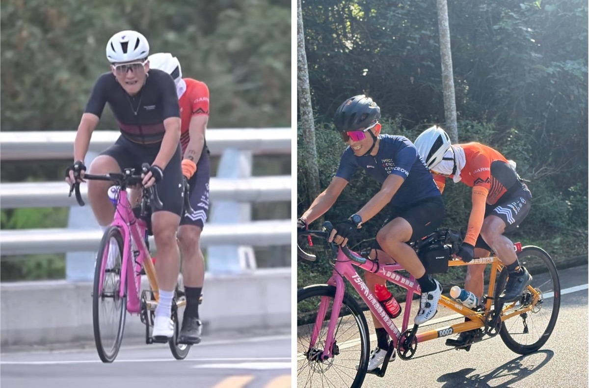 小古 (左) 與愷婕 (右) 分別擔任自行車與游泳的領騎與陪伴角色。