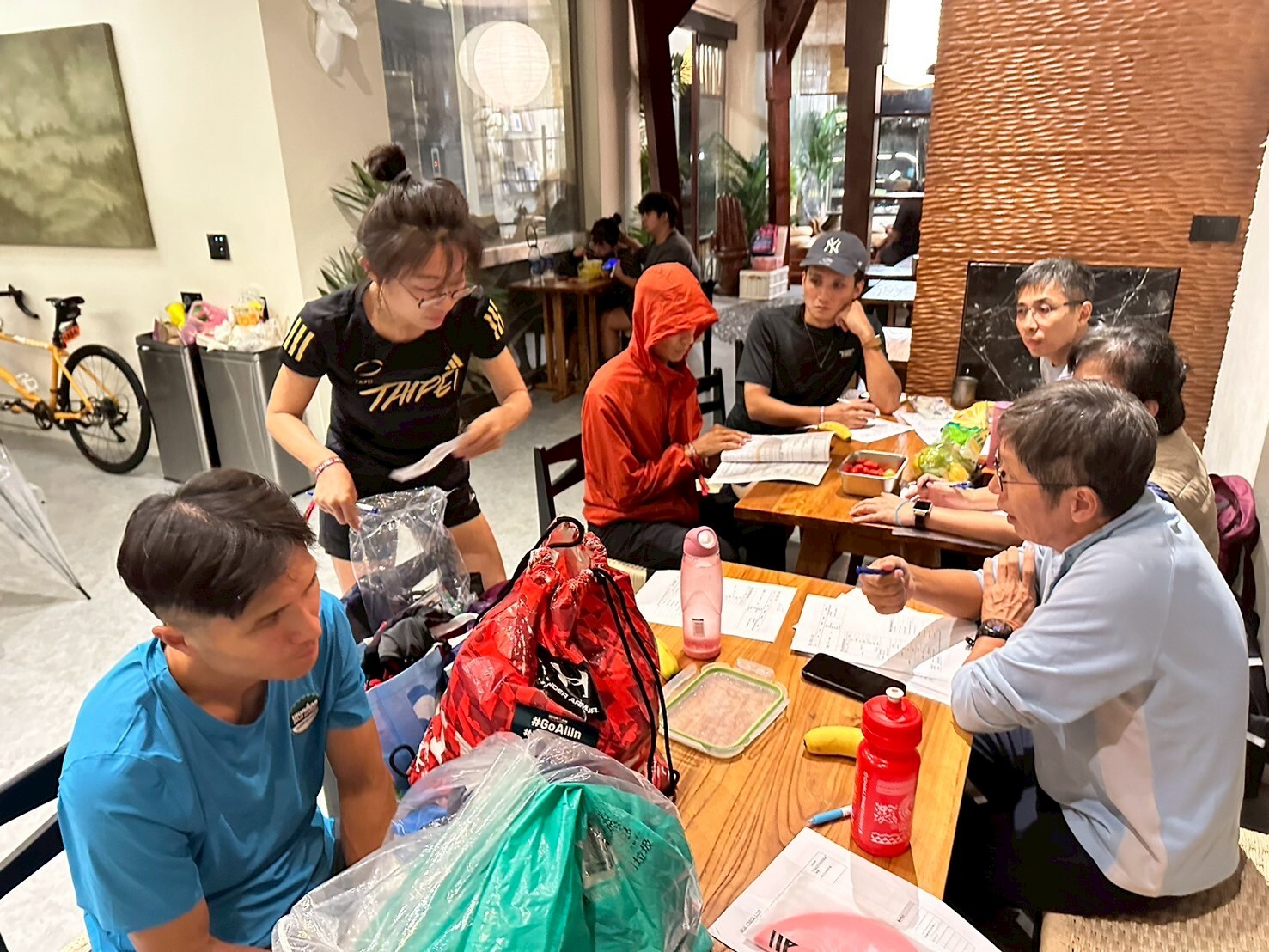 面對17小時的賽事,如何補給對於菜鳥團隊是一門重大課題。顧唄笑說,他甚至請了AI幫忙,也有諮詢專業營養師,列了40多項食物清單,但到高海拔賽段,一切都跟想像不一樣了。
