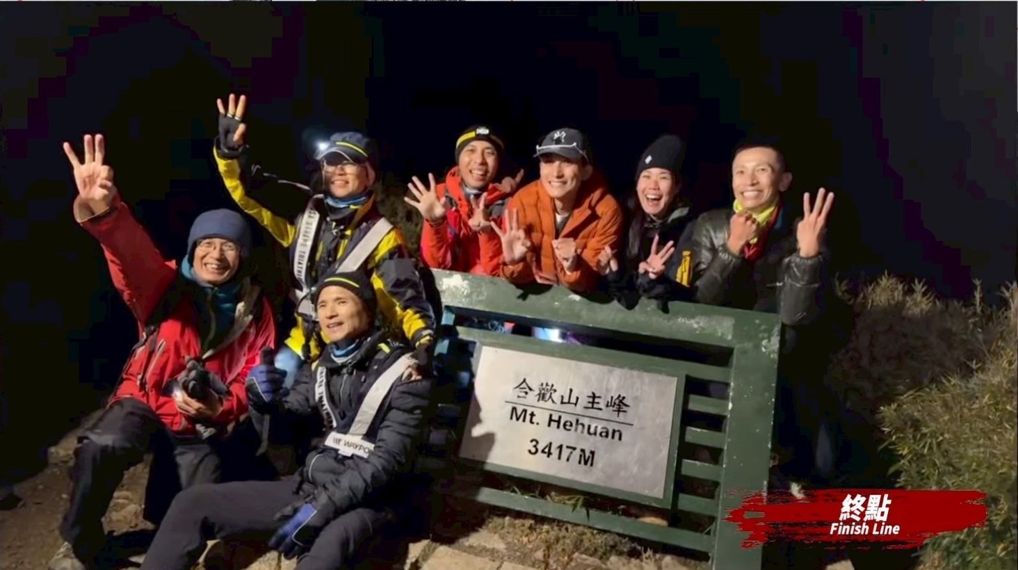 在3,000公尺的寒冷高山上,興哥不是一個人走,團隊成員集結,持著手電筒,左右攙扶著他,耳邊放著興哥預先準備的勵志組曲,在旋律與隊友的陪同下,團隊最終以17小時22分58秒登頂合歡主峰,敲下鐘響!