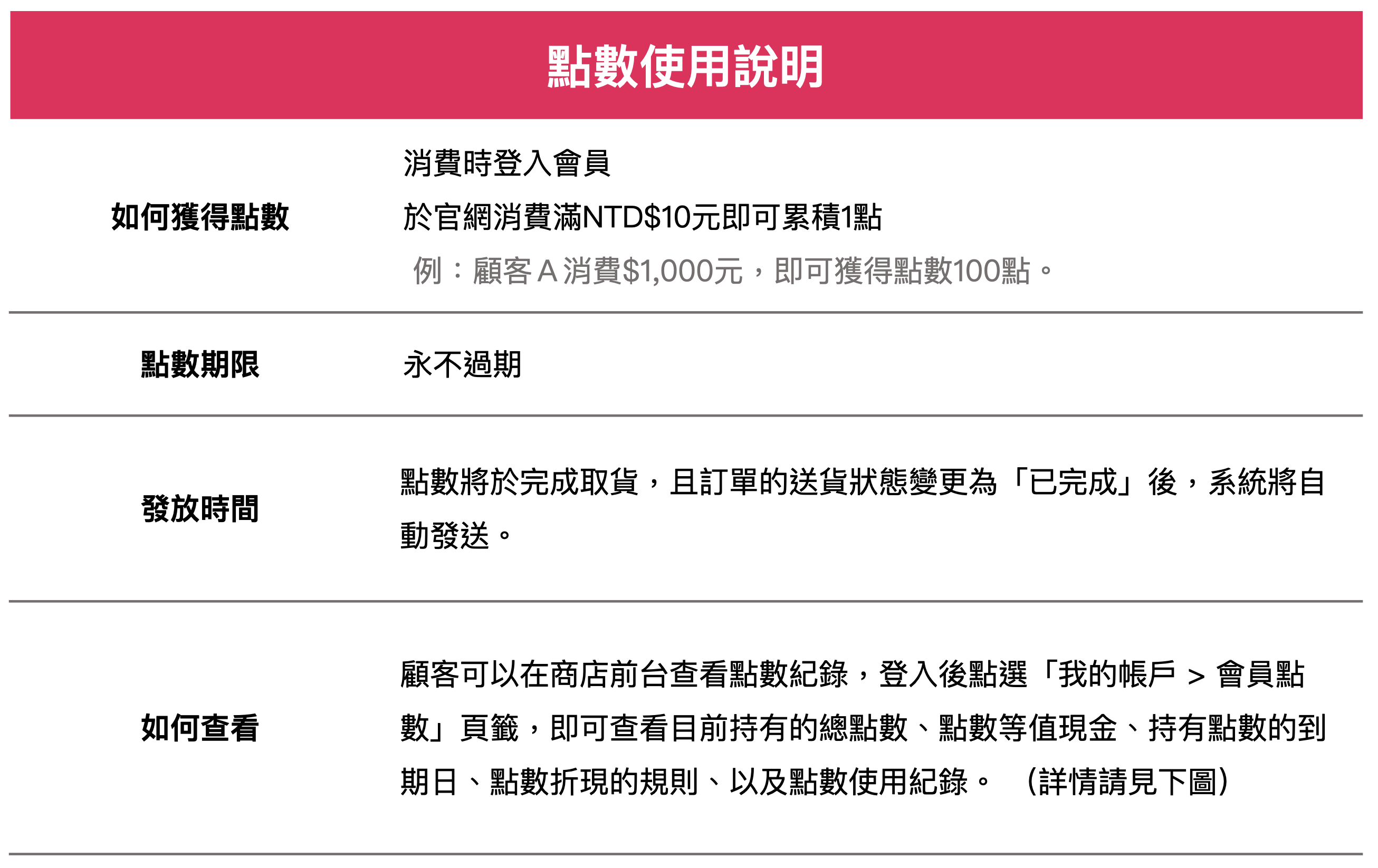 *上圖僅為示意圖,所有UP所發放之會員點數皆為「永不過期」。