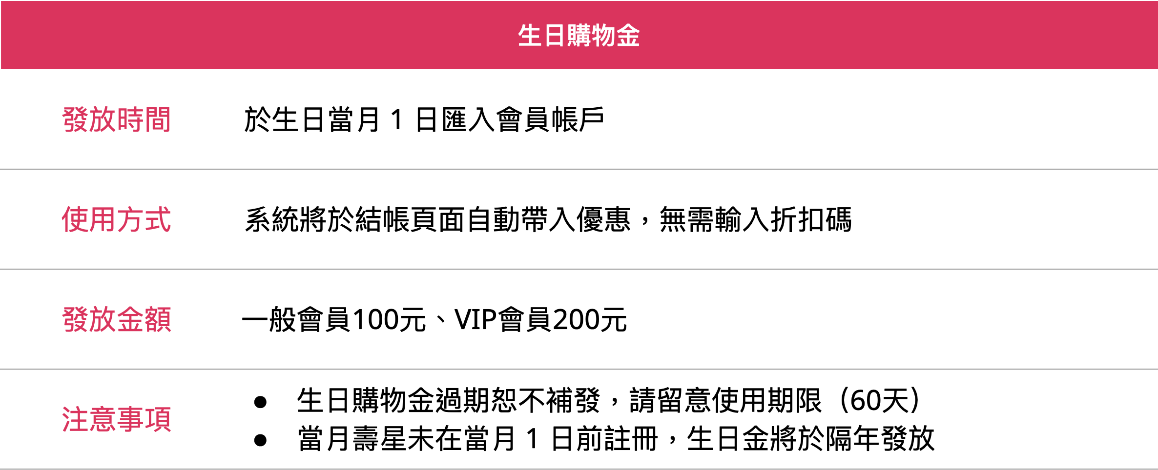 二、生日購物金