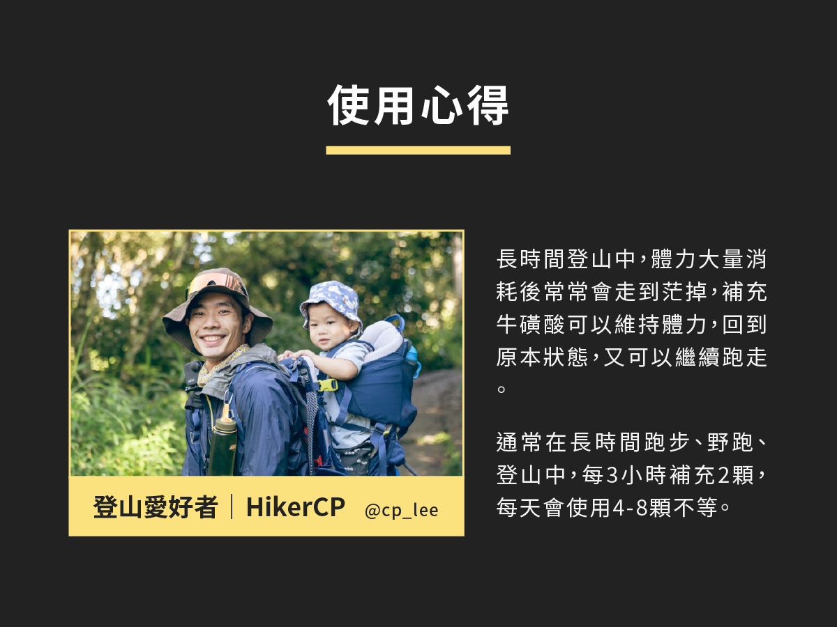 - 若白天行程不算太操,可在營地或山屋時補充 2 顆即可。