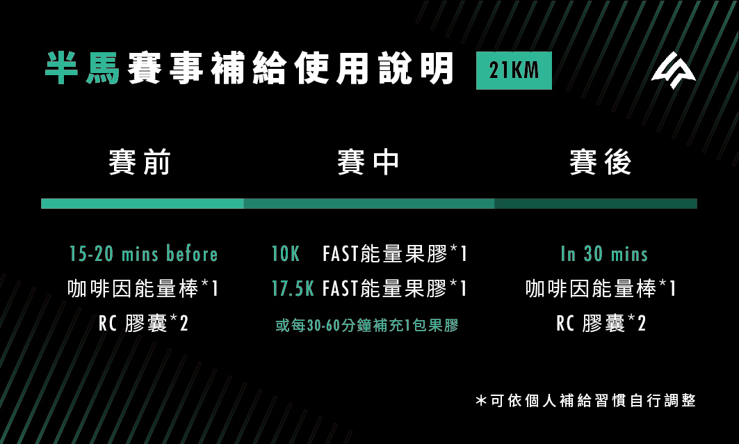 賽前能量補給、賽中維持狀態、賽後幫助修復,這一包通通有!