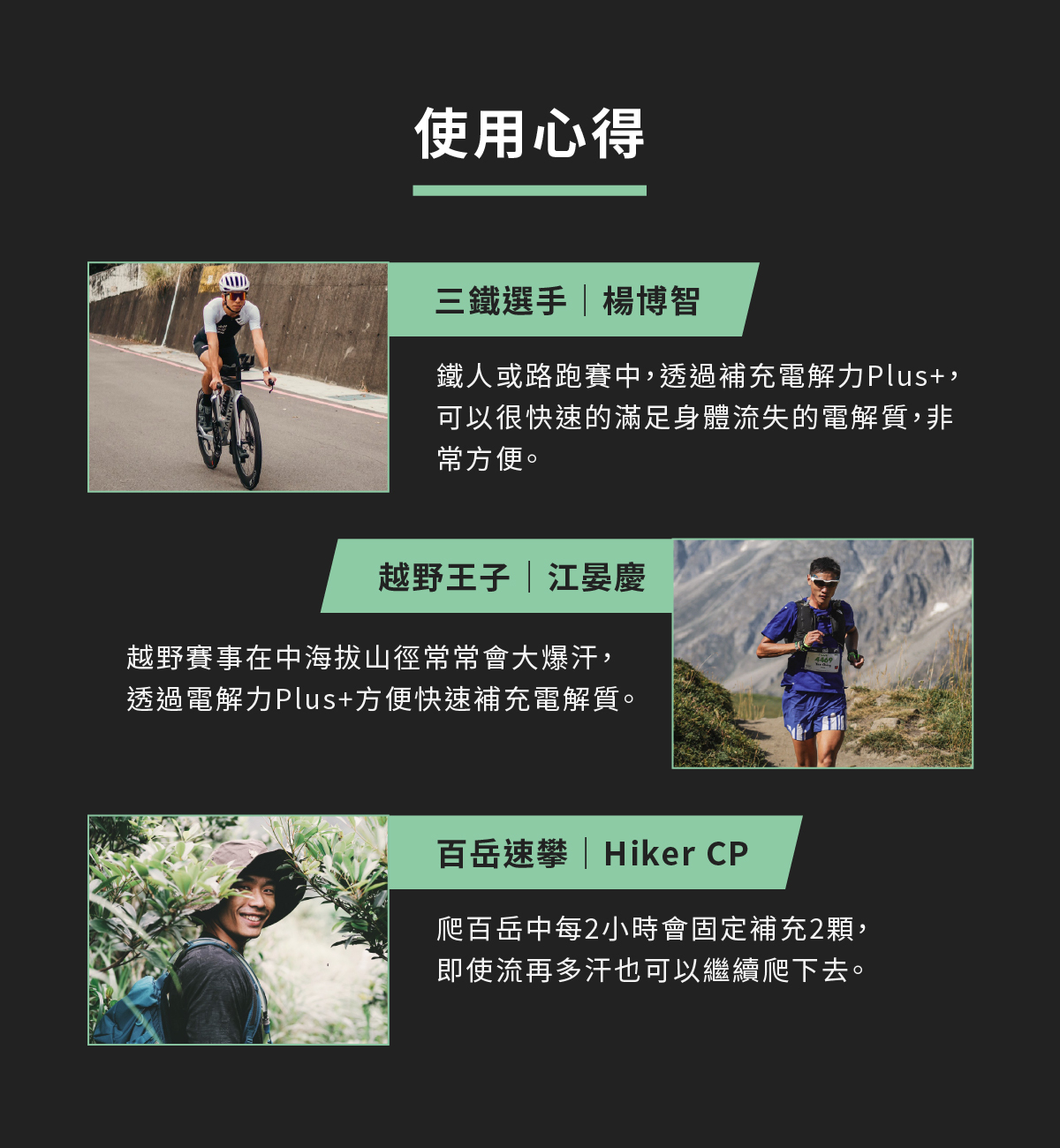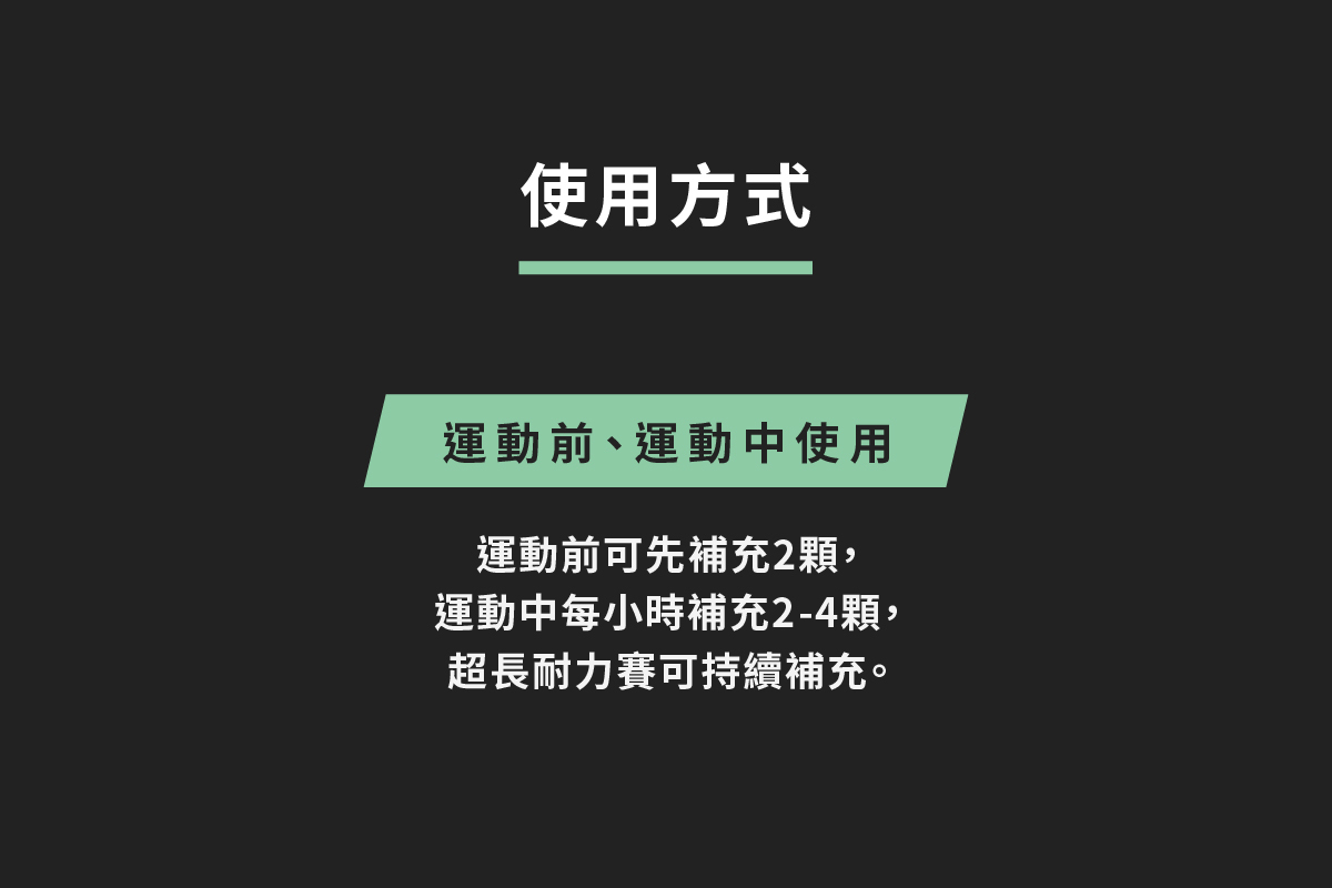 ✔ 一顆膠囊=一瓶運動飲料的電解質含量,適合大量爆汗與超耐力運動