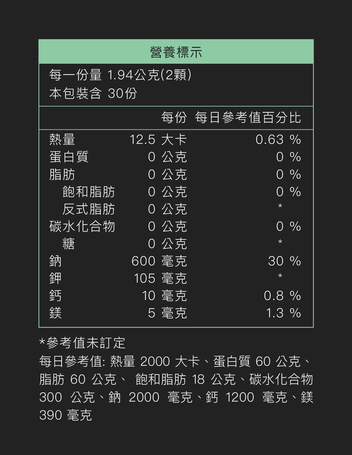 ✔ 鈉鉀鈣鎂一次到位,支援運動中電解質平衡